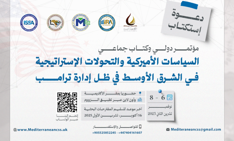 (3) يعقد المؤتمر حضوريا بمقر أكاديمية العلاقات الدولية، مدينة اسطنبول التركية، وعن بعد، عبر تطبيق زووم، أيام الخميس والجمعة والسبت 6 – 7 – 8 نوفمبر/ تشرين الثاني 2025.